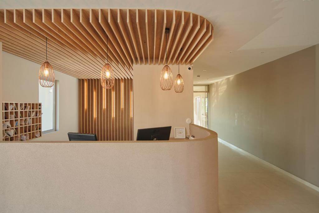 Interior construction of the rooms with a minimalist aesthetic, ergonomic design, and natural tones that highlight the building’s character.